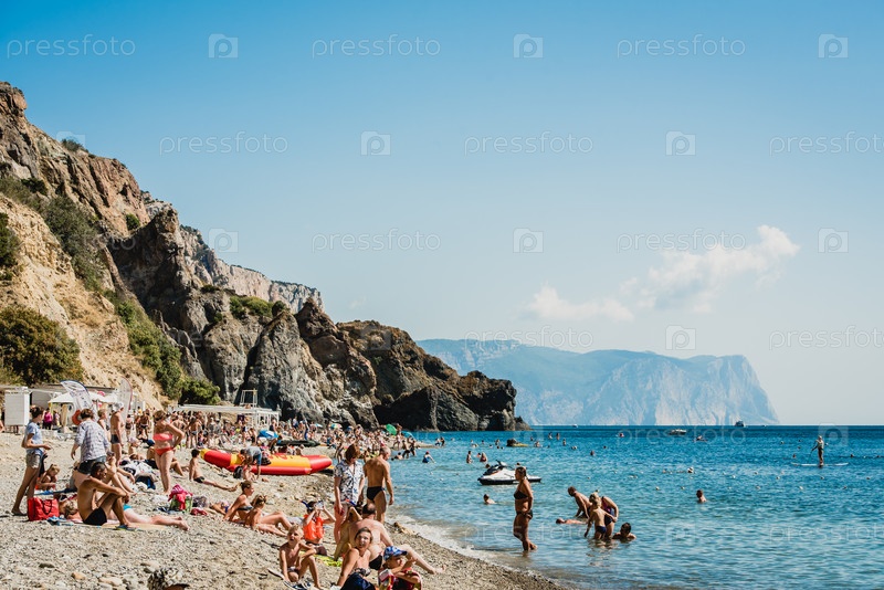 Крым, Балаклава, 15 сентября 2019 года: Пляж Джаспер под Севастополем и концепция пляжного отдыха в Крыму