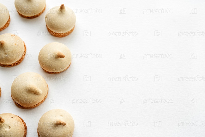 Вид сверху на белый кухонный стол и рамку из бисквитного печенья