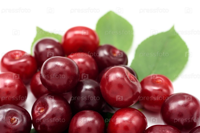 Спелые ягоды вишни на белом фоне, крупный план