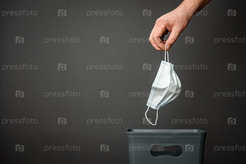 Медицинскую маску выбрасывают в мусор на переработку и переработку