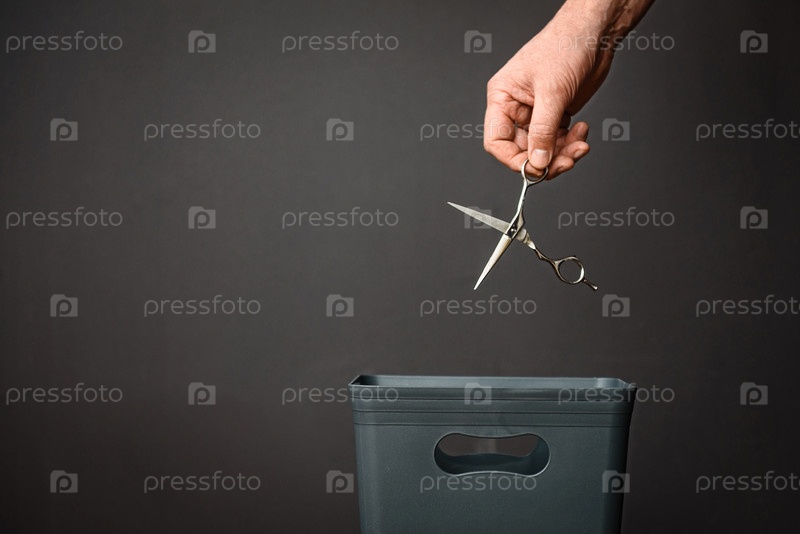 Ножницы бросают в ведро на переработку или переработку