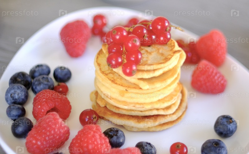 Блины на белой тарелке, выборочный фокус