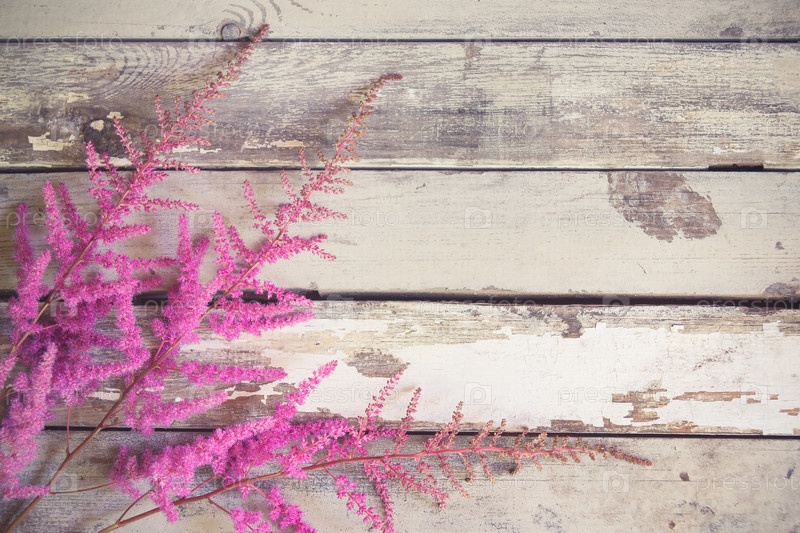 Красивые цветы астильбы граничат на старом деревянном фоне
