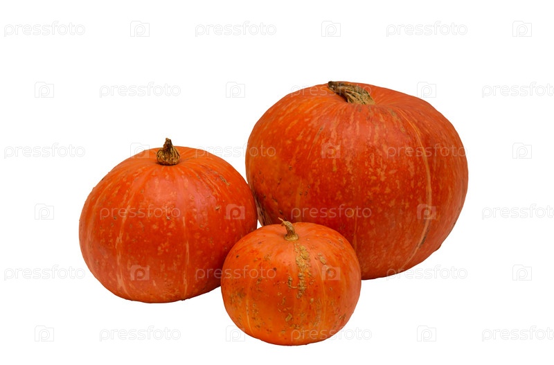 Оранжевые тыквы изолированы на белом фоне. Селективный фокус