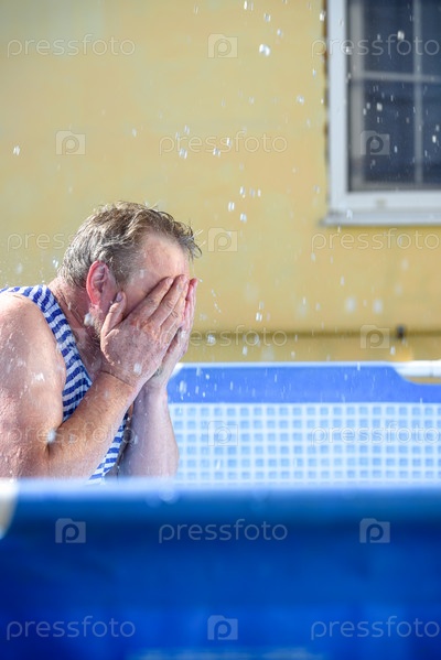 Мужчина с брызгами воды в бассейне