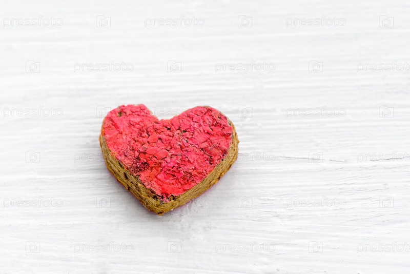Красное сердце на белом деревянном фоне. День святого Валентина. Сердце – символ любви