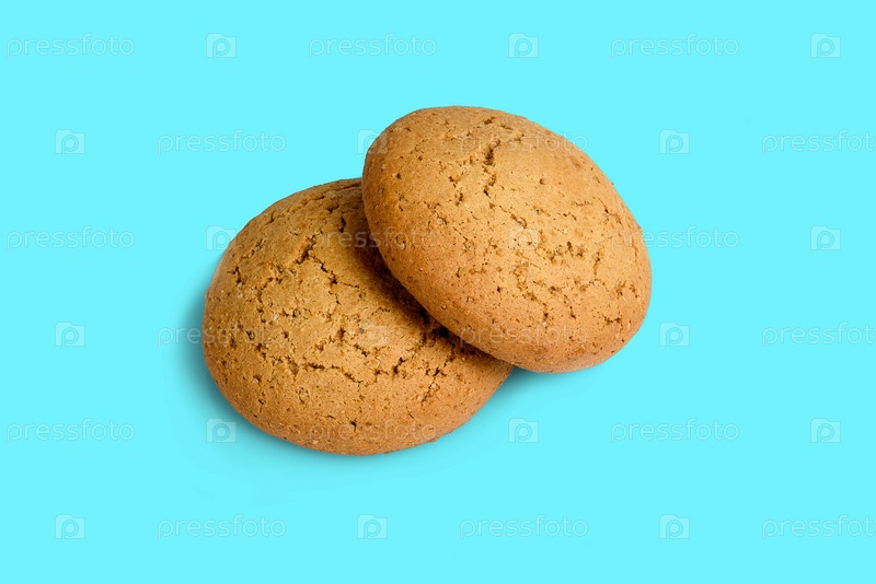 Два овсяных печенья на белом фоне