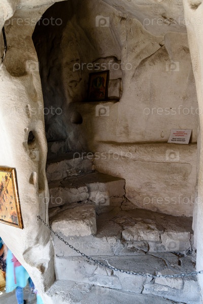 Крым, Россия, 13.09.2019: Пещерные храмы в монастырях Крыма - вид изнутри