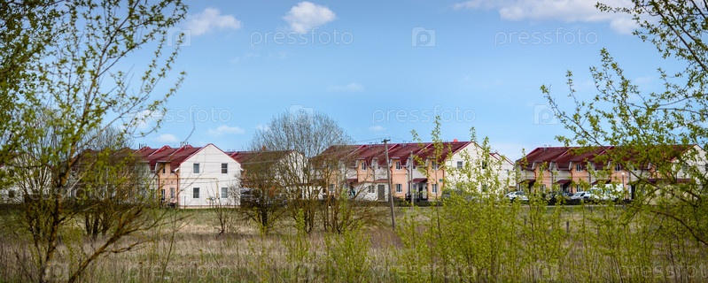 Красивый загородный пейзаж-коттеджный поселок летом - панорамы