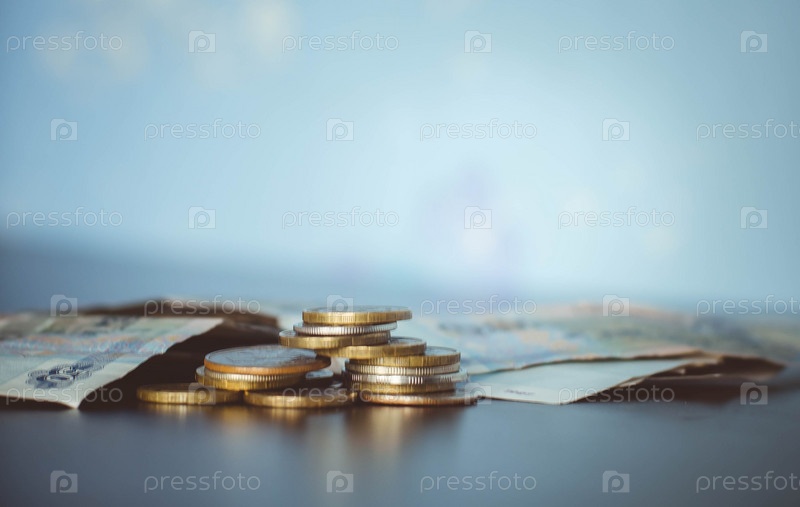 Денежные монеты на столе - российский рубль