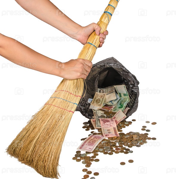 Банкноты бросают в корзину и на белом
