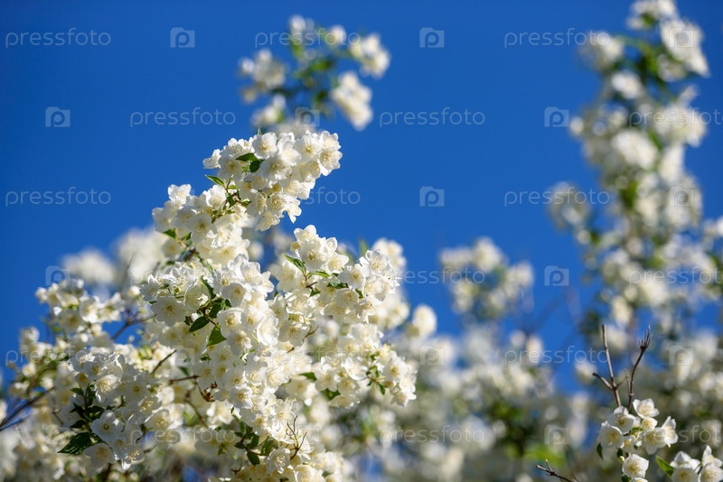Красивый цветущий жасмин в голубом небе