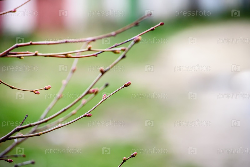 Молодые почки набухли на ветке - зеленый естественный фон