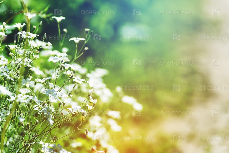 Летние цветы на мягком фоне, солнечный свет