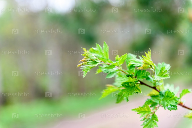 Зеленые листья на ветке крупным планом. Красивый летний фон