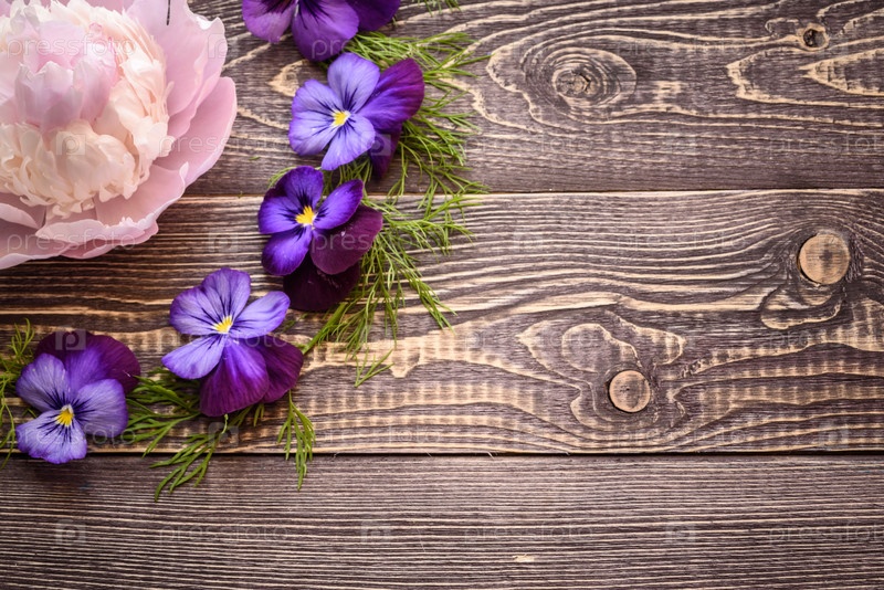 Фиалки на деревянном фоне. Копировать пространство