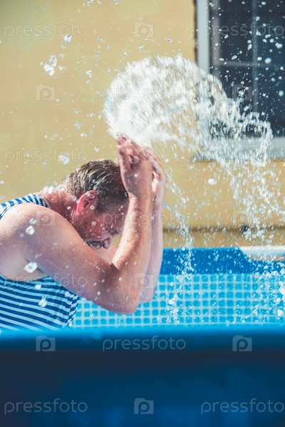 Мужчина с водой, плещущейся в бассейне, тонизирует