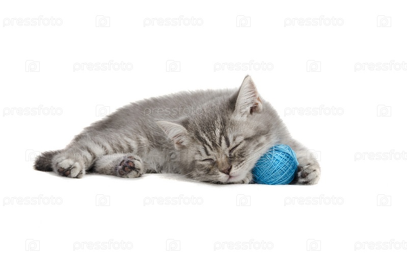 Британский котенок смешно спит - изолированный белый