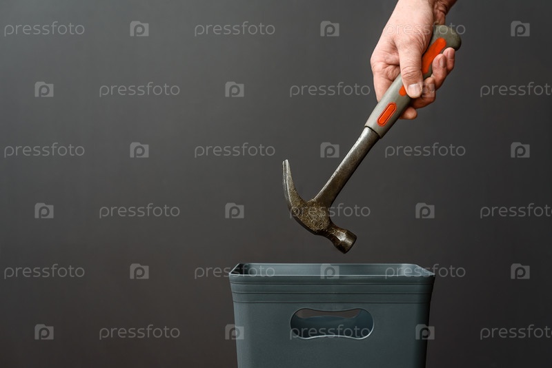 Строительный молоток выбрасывают из мусора на утилизацию