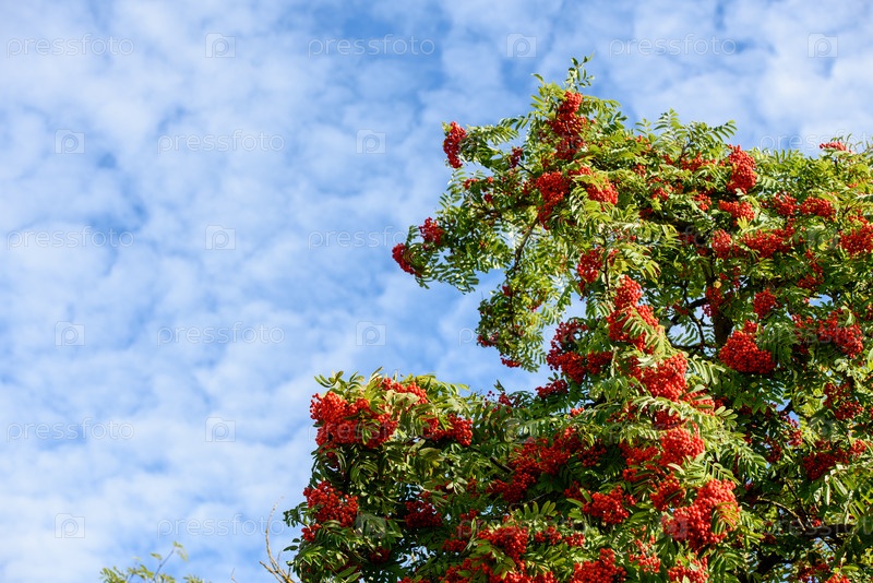 Ветка с красными осенними ягодами Роуэн. Естественный осенний фон