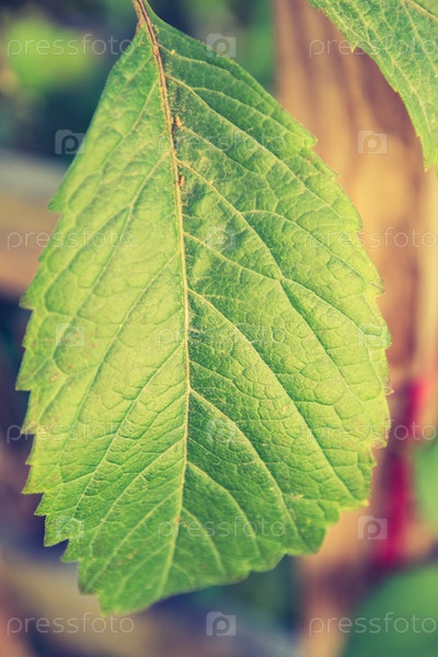 Зеленый лист крупным планом. Макросъемка растений. Тонированный