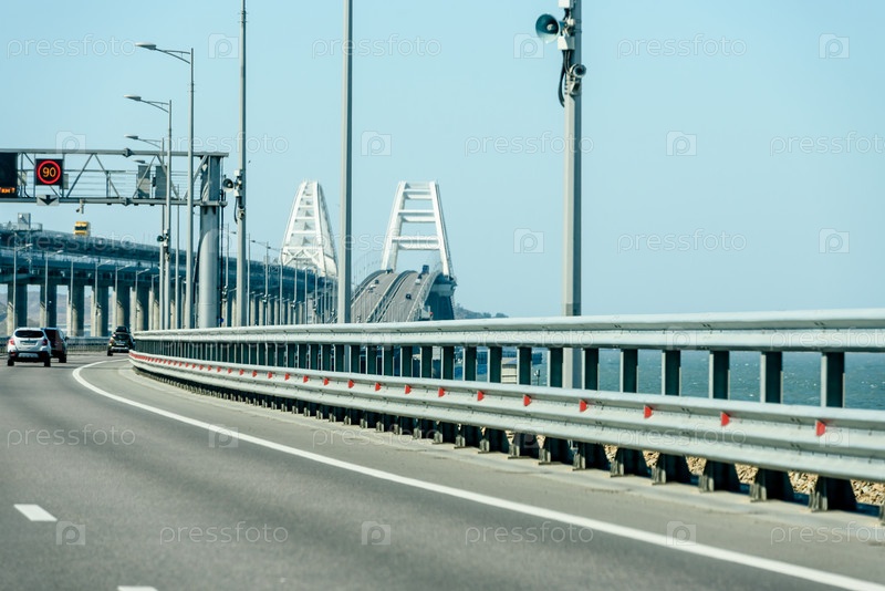 Россия, Крым, 11 сентября 2019 г.: Вид из окна машины. Крымский мост, новая железная дорога в Крыму. Крымновый, дорога