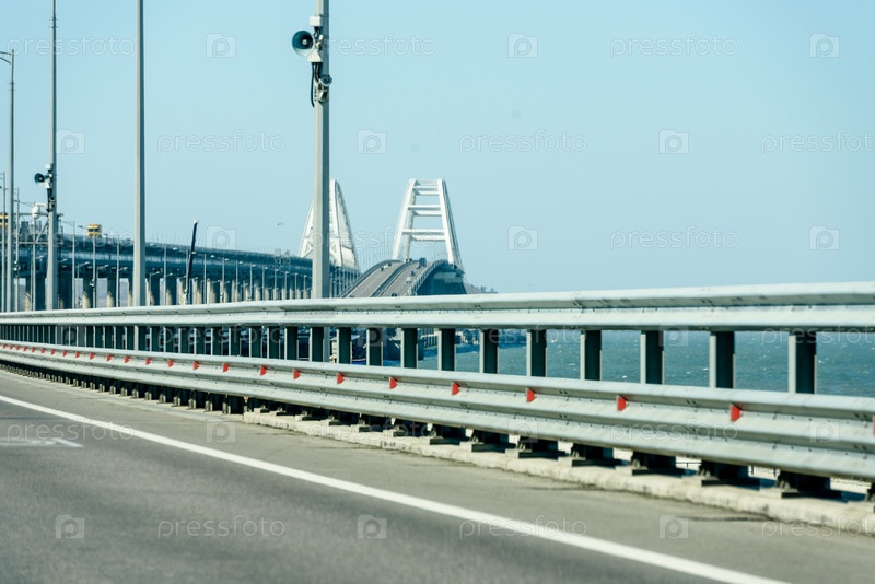 Россия, Крым, 11 сентября 2019 г.: Вид из окна машины. Крымский мост, новая железная дорога в Крыму. Крымновый, дорога