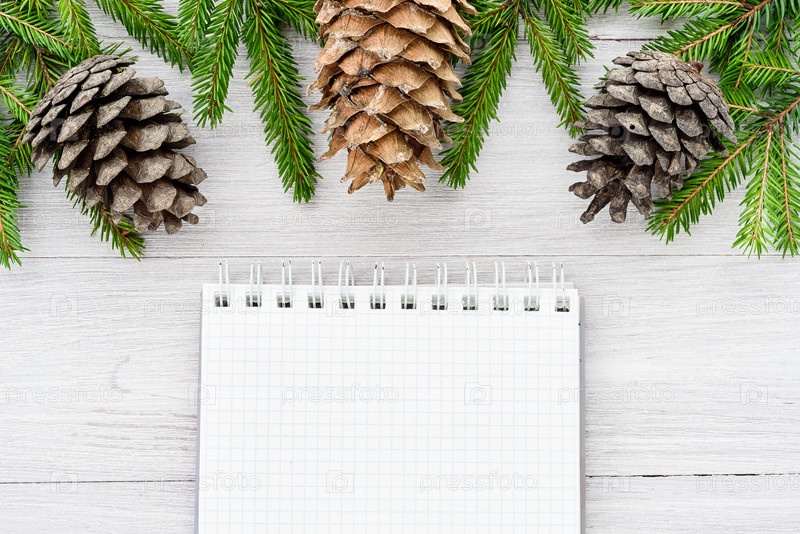 Рождество 2019. Новогодняя композиция - шишки, ветки, блокнот