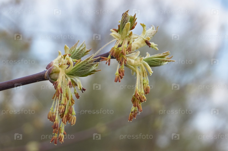 Цветение ясеньколистный кленовый, или американский клён (лат. Acer negundo), соцветия распускаются Весной