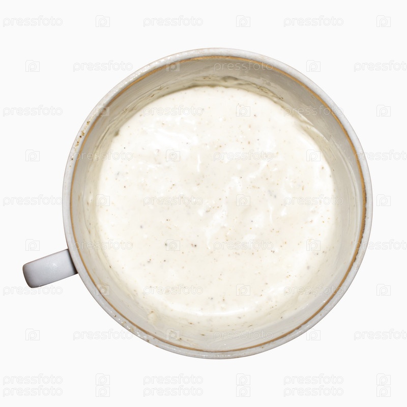 Соус чеснока в чашке на белом фоне.Соус чеснока для шаурмы.Соус чеснока в чашечке на белом фоне.Соус чеснока для шаурмы