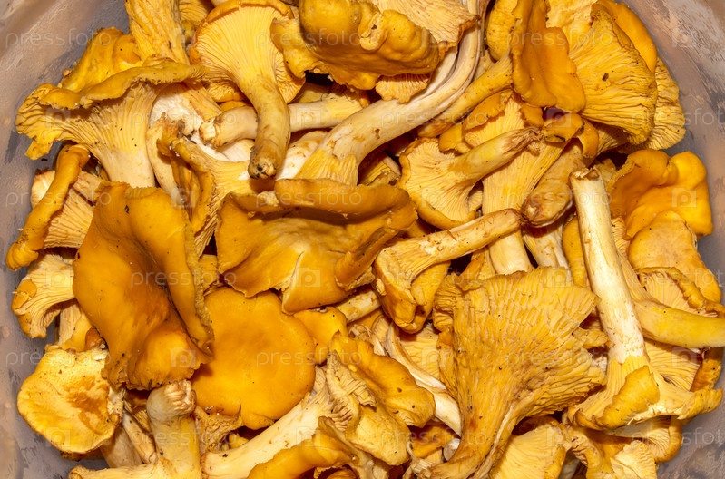 Фон из лисичных грибов.Лесные лисические грибы. Chanterelle mushrooms background.Forest chanterelle mushrooms