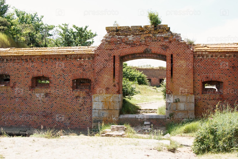 Заброшенная старая крепость у моря в солнечный летний день
