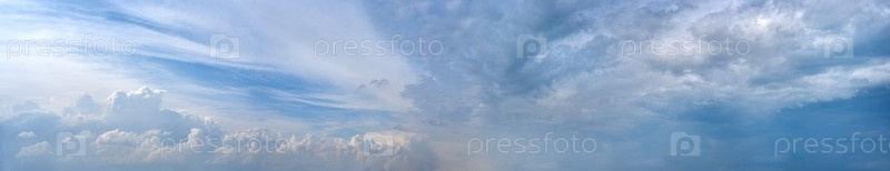 Красивое голубое облачное небо. Панорамная композиция в высоком разрешении. Природа