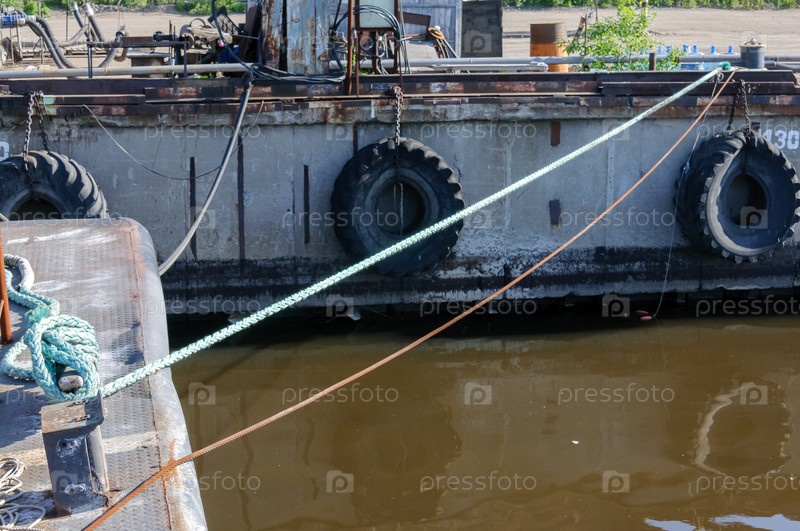 Причальная стенка в порту увешана старыми покрышками