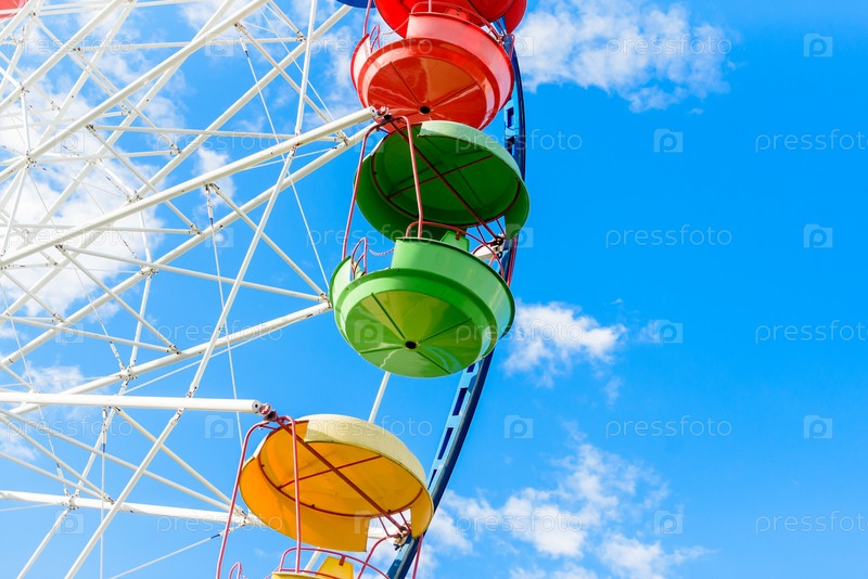 Колесо обозрения на фоне голубого неба, крупный план