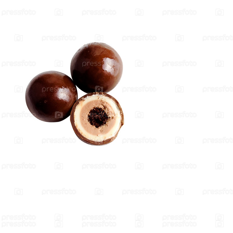 Шоколадные конфеты на белом фоне, три штуки