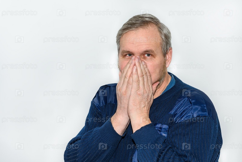 Мужчина закрывает лицо и нос ладонями во время чихания