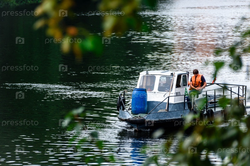 Россия, Санкт-Петербург, 31 июля 2020 года: речной трамвай, корабль идет по реке