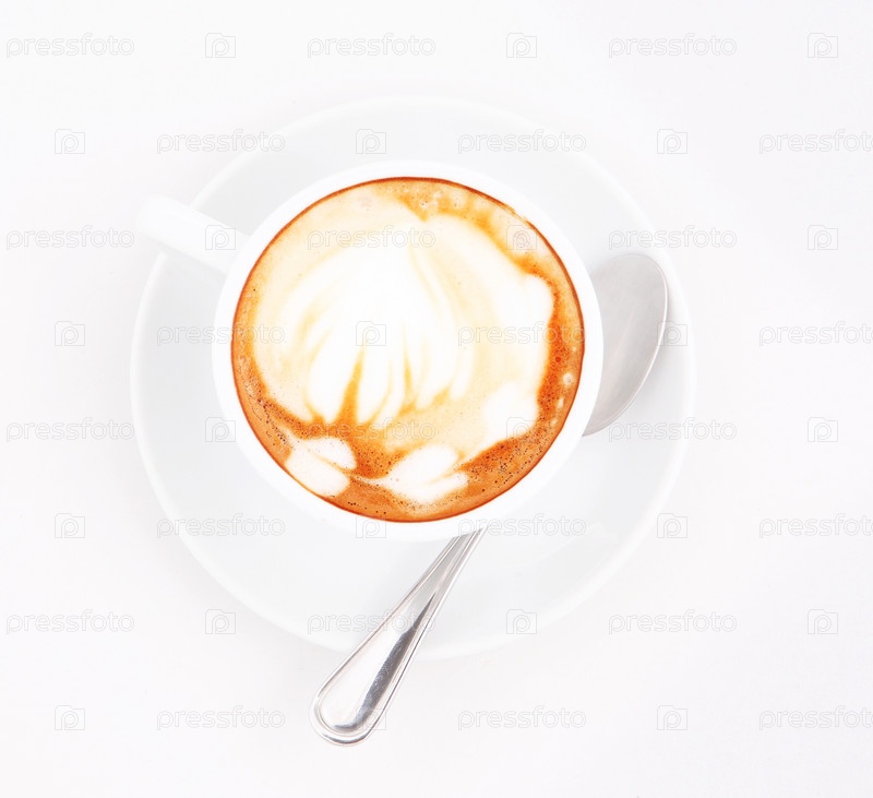 Кофе в чашке с блюдцем и чайной ложечкой