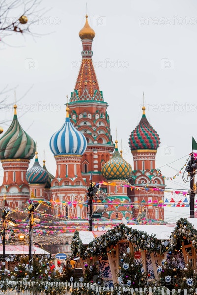 Рождественское украшение Красной площади. Красивые праздничные украшения в городе. Рождественские украшения улиц. Москва, Красная площадь, декабрь 2023 г