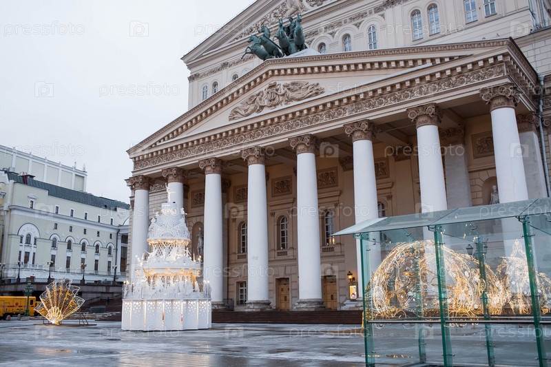 Новый год. Рождественские украшения на улицах Москвы. Рождественские каникулы, зимний пейзаж. Большой театр в центре Москвы. Россия, Москва, 2023 г