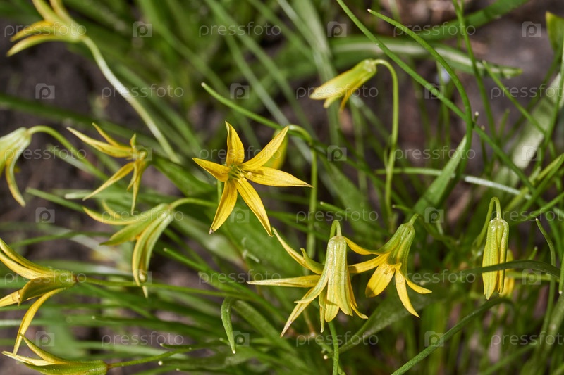 Весна. на грядке цветет Гусиный лук или Птичий лук (лат. Gagea)