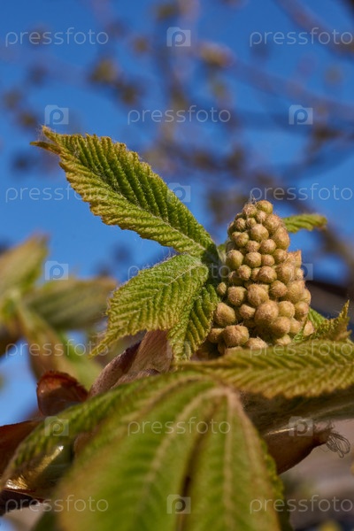 Весна. На городской площади цветут соцветия каштана