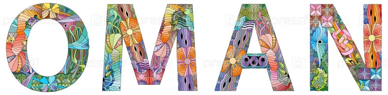 Векторное слово Оман. Ручная роспись художественного дизайна. Иллюстрация для дизайна футболок, татуировок и других украшений
