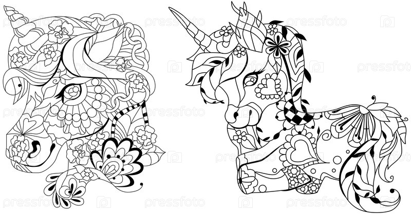 Единороги в стиле зентангл. Может использоваться для печати на футболках, обоях или плакатах