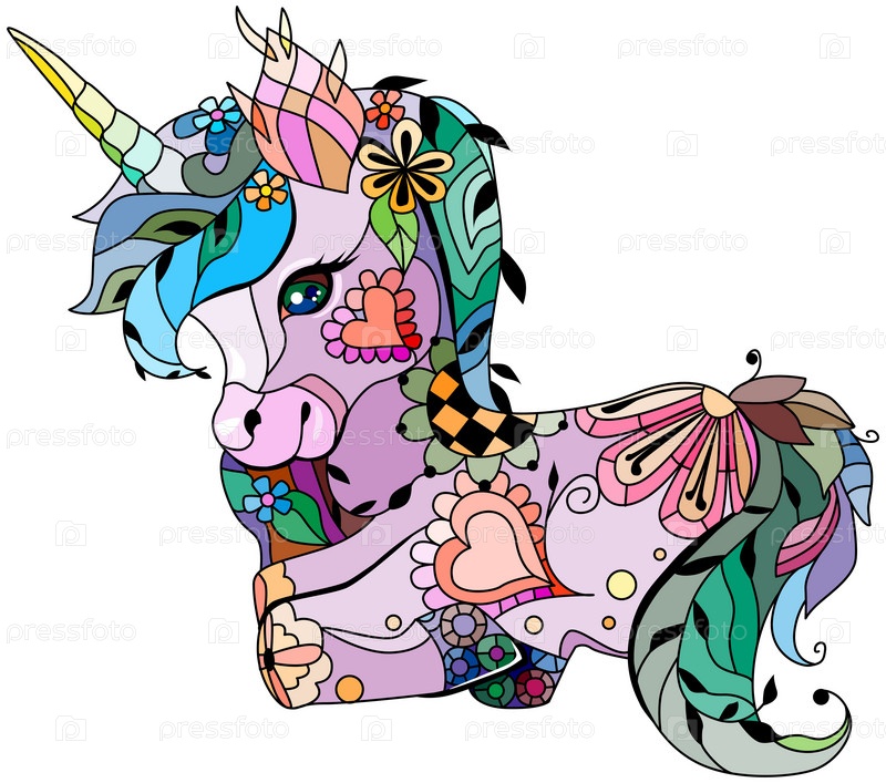 Единорог в стиле зентангл. Может использоваться для печати на футболках, обоях или плакатах