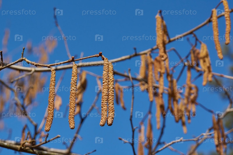 Тыквенные серёжки обыкновенной чечевицы (лат. Corylus avellana) цветут в начале весны до появления листьев