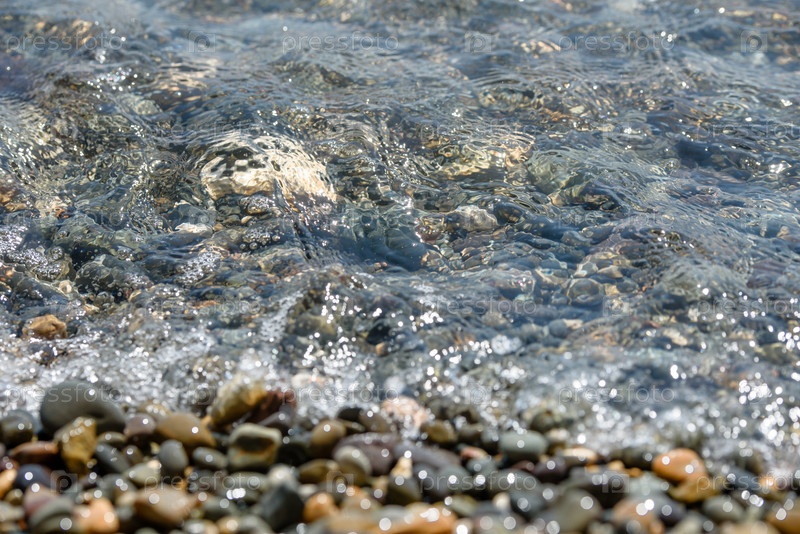 Мокрая галька и морские волны — текстура морского побережья