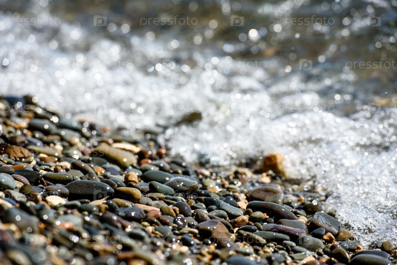 Мокрая галька и морские волны — текстура морского побережья