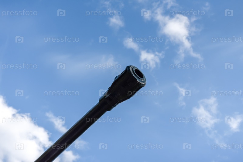 Ствол артиллерийского орудия на фоне голубого неба крупным планом